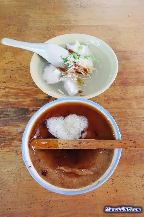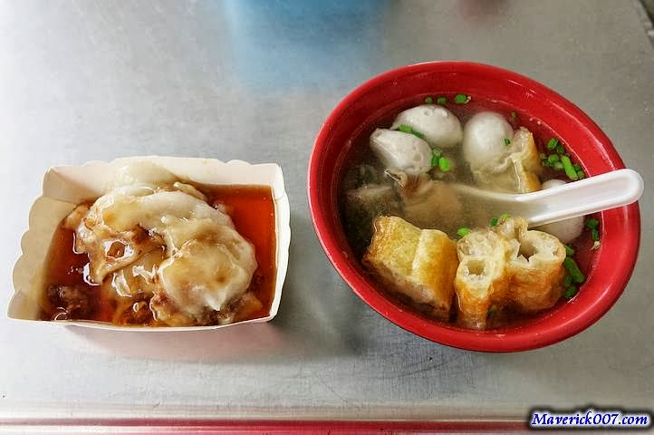 可惜來的太早 招牌的碗粿還沒開賣 點個蝦仁肉圓跟魚皮魚丸湯試試 肉圓的肉餡太稀疏不是我愛的那種