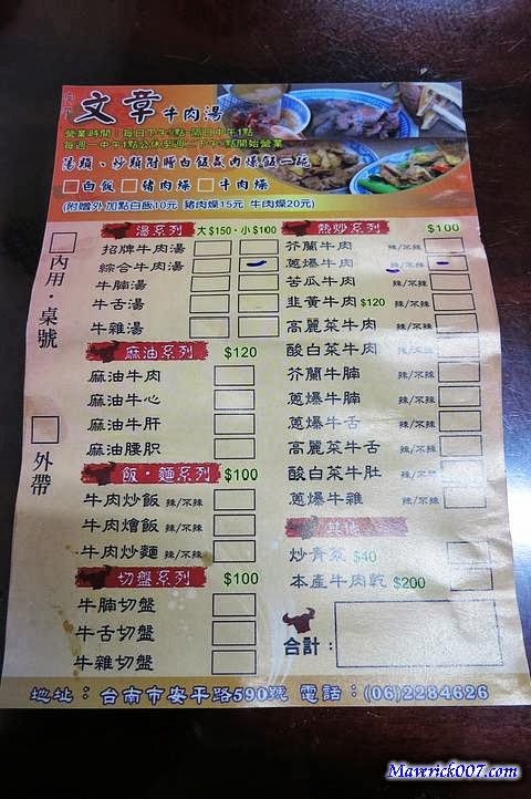 這次不點簡單的牛肉清湯 因為台南大多牛肉湯店只賣牛肉或牛腩 文章牛肉湯有兼賣內臟 當然要來個綜合牛肉湯 牛筋、牛肉、牛腩還有軟嫩的牛肝 不是每家牛肉湯店都有的吃的 隨湯附飯一碗 白飯、牛肉燥、豬肉燥任選 當然是選外地少有的牛肉燥嘍! 蔥爆牛肉 比較普通了點 下次可以跳過