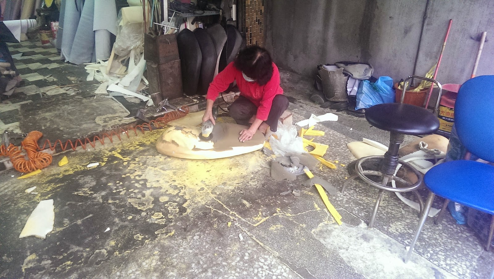 一進來跟老闆娘討論如何修改坐墊後