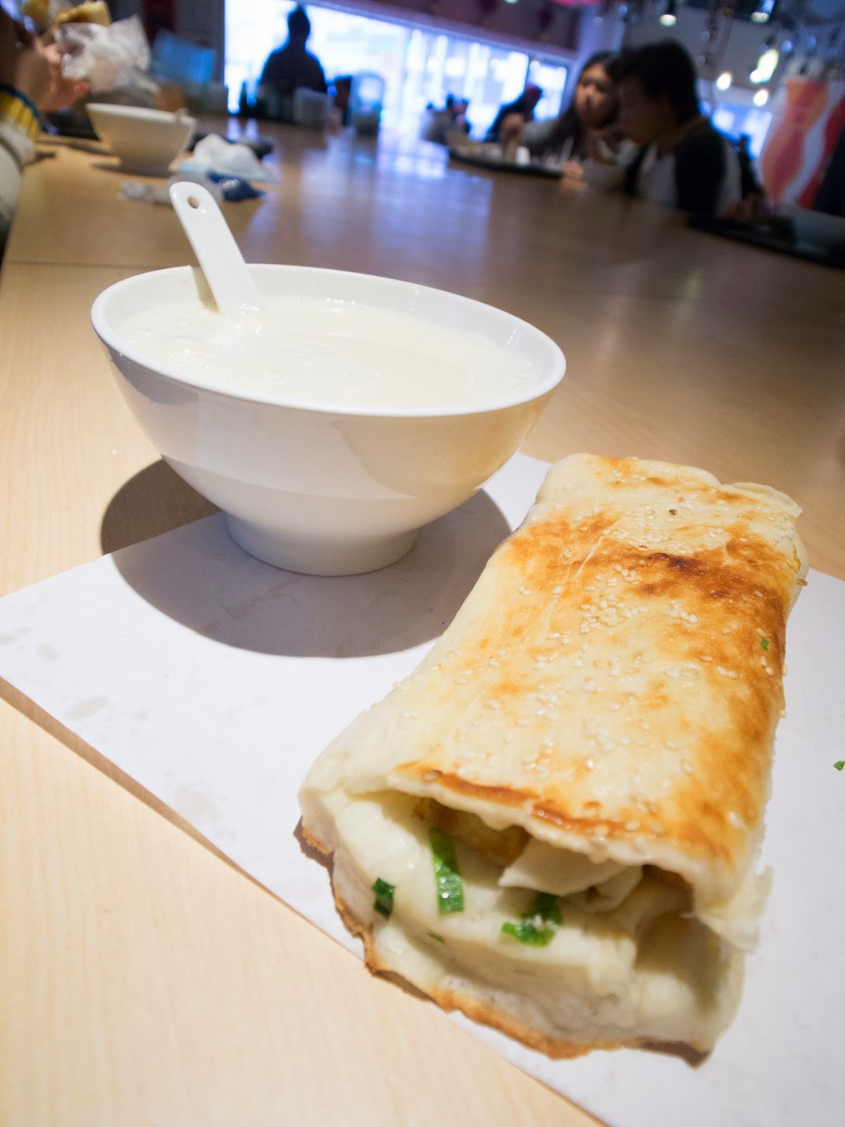 既然都來豆漿店了,不來碗熱呼呼的豆漿怎麼行呢?只是因為阿姨動作太迅速,還來不及跟她說我要無糖,豆漿就端上來了。
