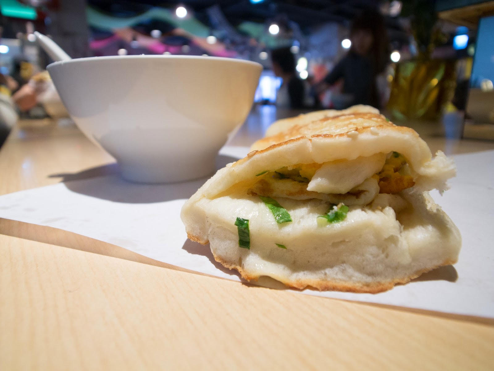 原本期待會有飽滿的蔥花在裡頭,吃下去一定很過癮。 好在酥餅的口感很酥,蔥花的汁液也均勻的被裡頭的餅皮吸收,所以嚼起來還蠻香的。