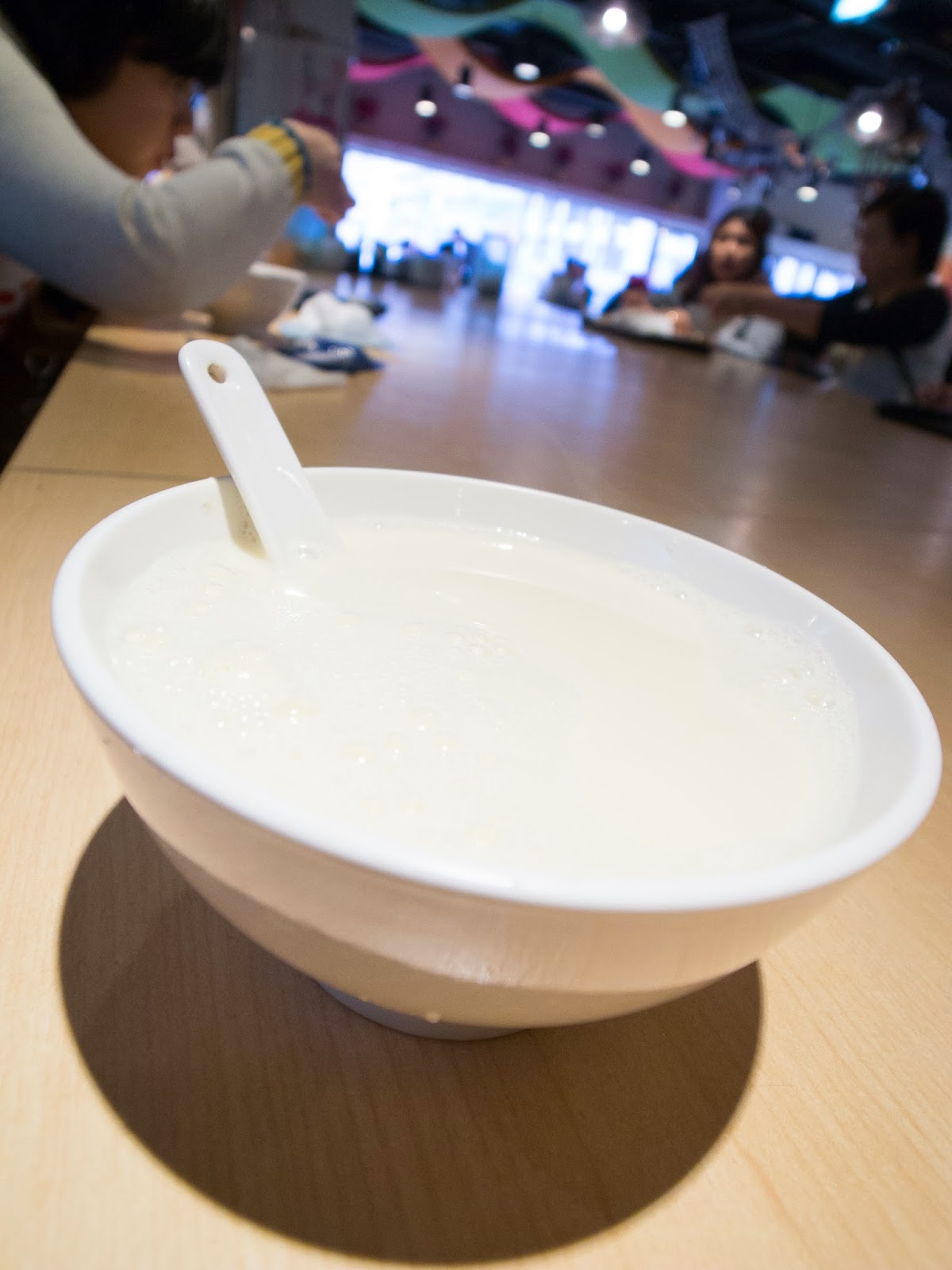 既然都來豆漿店了,不來碗熱呼呼的豆漿怎麼行呢?只是因為阿姨動作太迅速,還來不及跟她說我要無糖,豆漿就端上來了。
