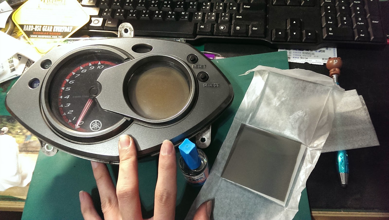 首先要把下偏光片去除,因為它就是造成儀錶板看不清楚的元凶~ 撕掉阿!!