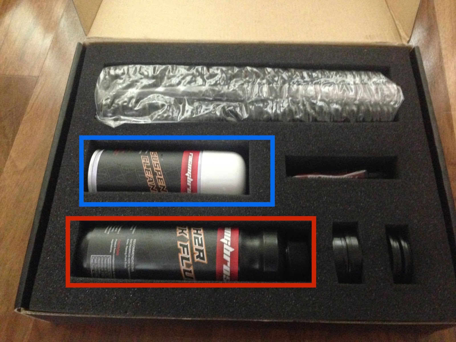 藍色框為Luby清潔液 紅色框為前叉油
