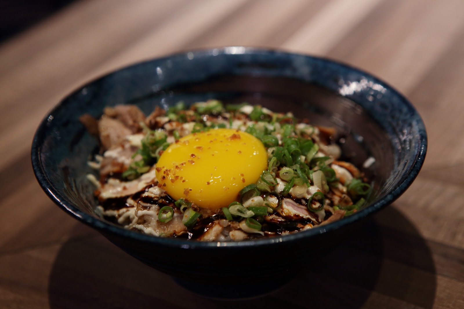生蛋、美乃滋、大量醬油,叉燒碎肉、白飯