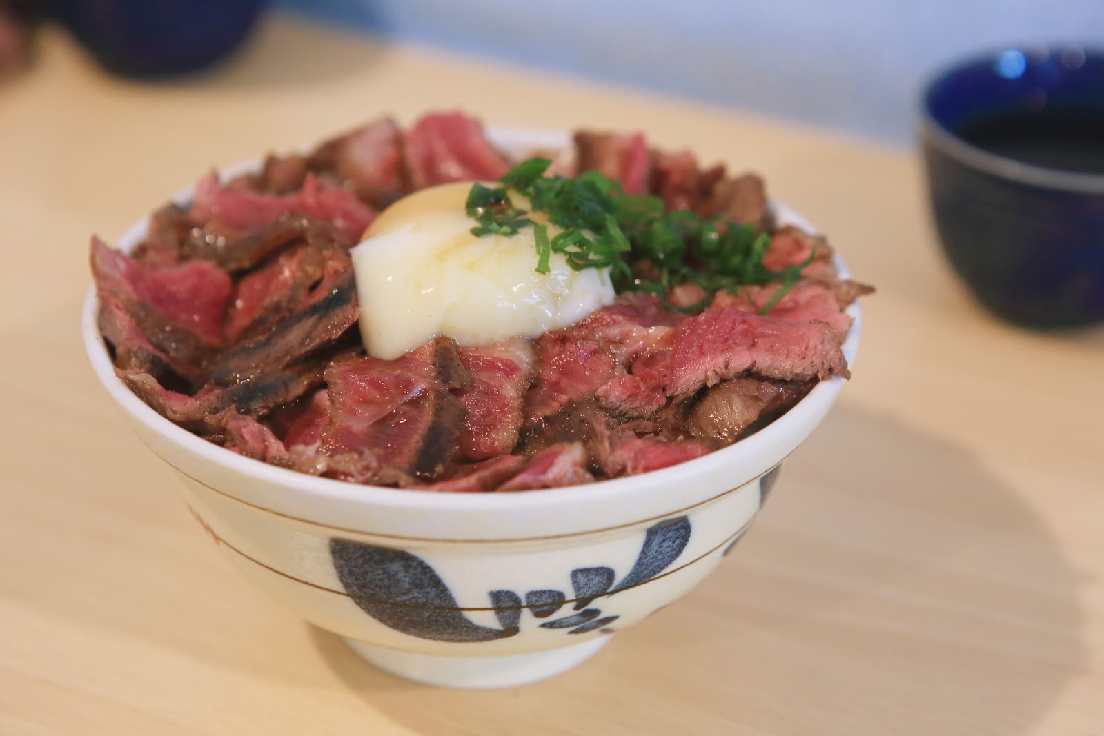 不管你點了哪一碗,飯上都是滿滿的肉花,視覺上相當令人愉悅,口味上並不會太重,只加入淡淡的鹽做調味,可以確實吃到牛肉的美味,適量的白飯搭配著半熟蛋與偏甜醬汁,吃完有滿滿的飽足感,唯一的小缺點就是三分跟五分熟度控制可能不夠,內部還保持未加溫生肉的狀態。