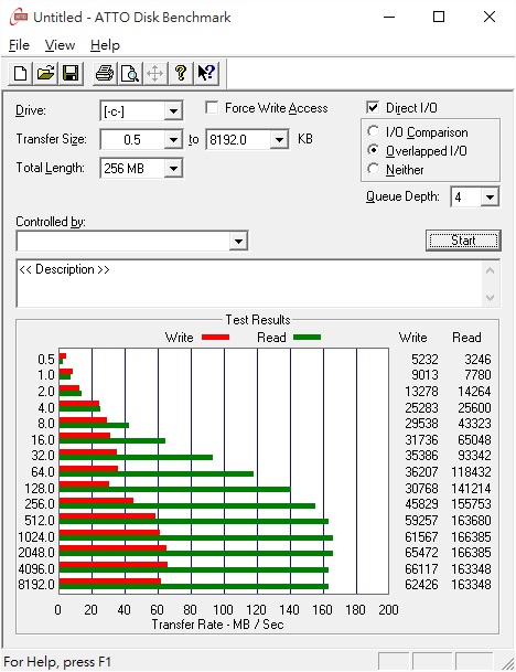 ▲ 在精英LIVA X²迷你電腦,以ATTO測試eMMC速度,寫入最高可達66Mbytes/sec,讀取可達163Mbytes/sec。