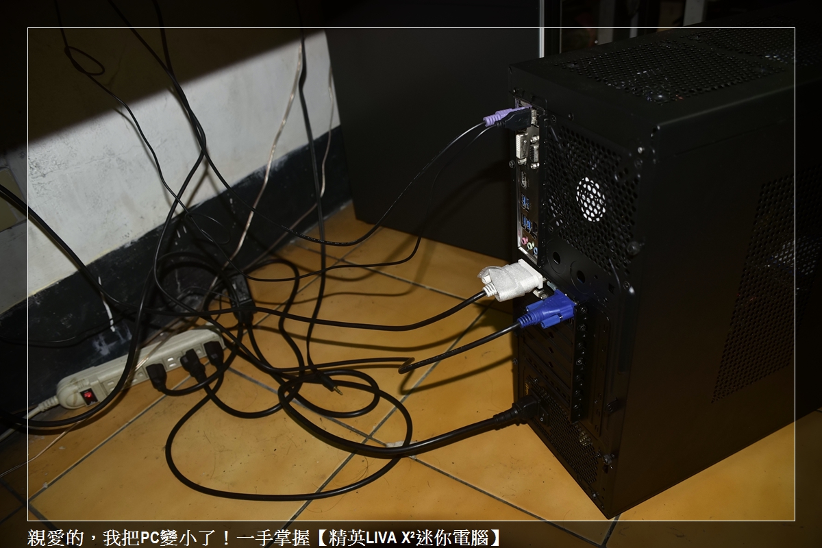 ▲ 電視櫃中沒有設計電腦主機的專用位置,只能找地方亂塞,變成客廳中的難民,看看這部個人電腦,居然佔據在客廳的最高點,相當有礙觀瞻,而且無處躲藏的線材讓客廳變成「盤絲洞」,更何況風扇的噪音更讓電影的欣賞品質大打折扣。