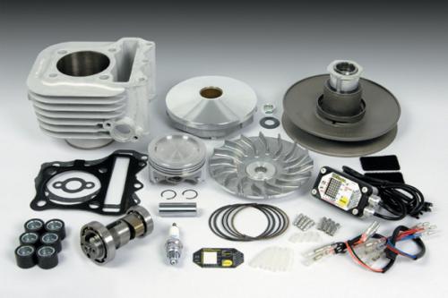 キット内容:ノーマルヘッド用のピストンキット、シリンダー(セラミックメッキシリンダー)、カムシャフト、ウエイトローラー(15g×6個)、ガスケット類がセットになっています。