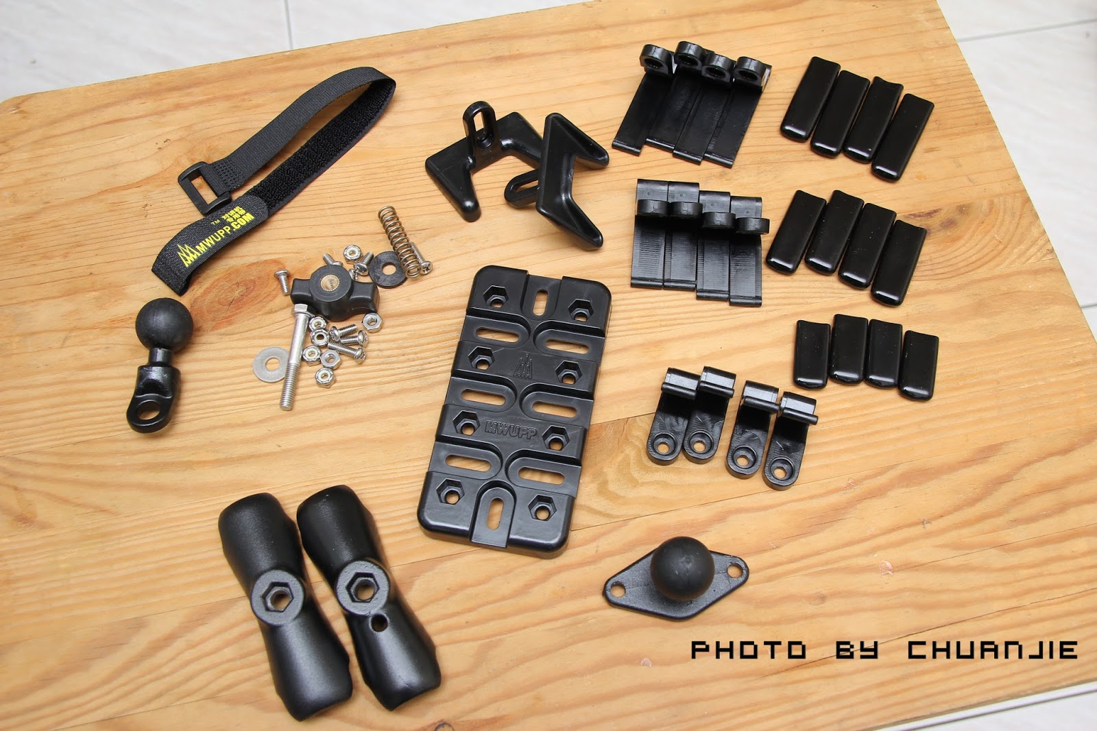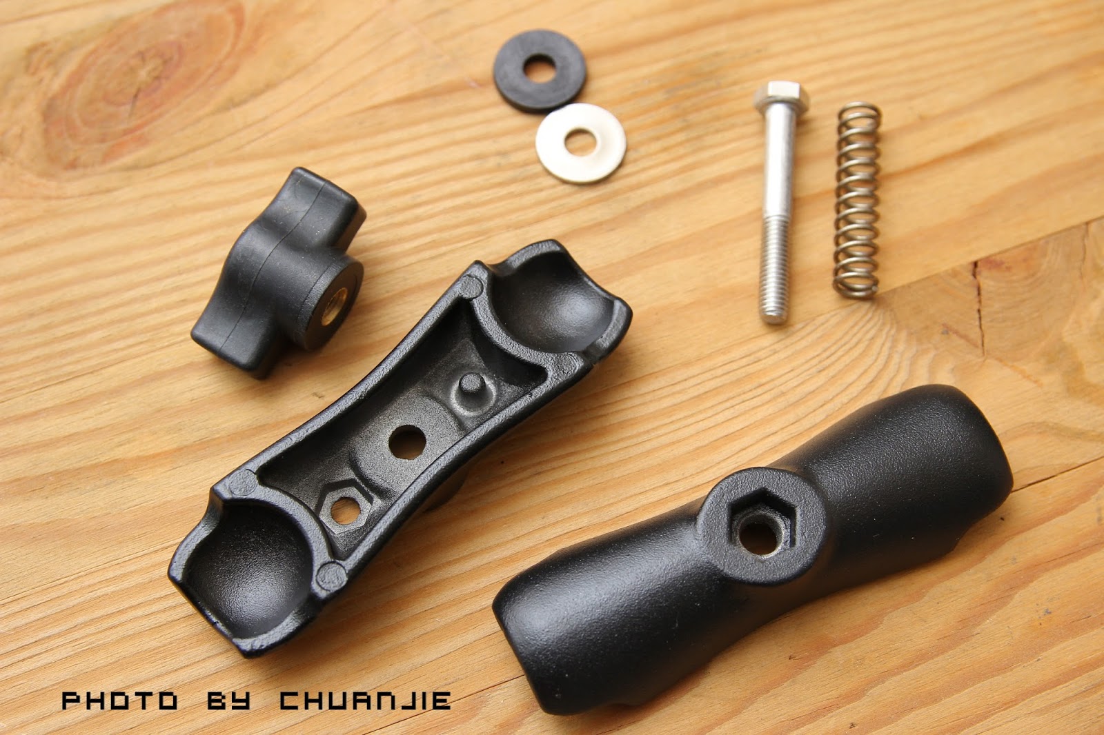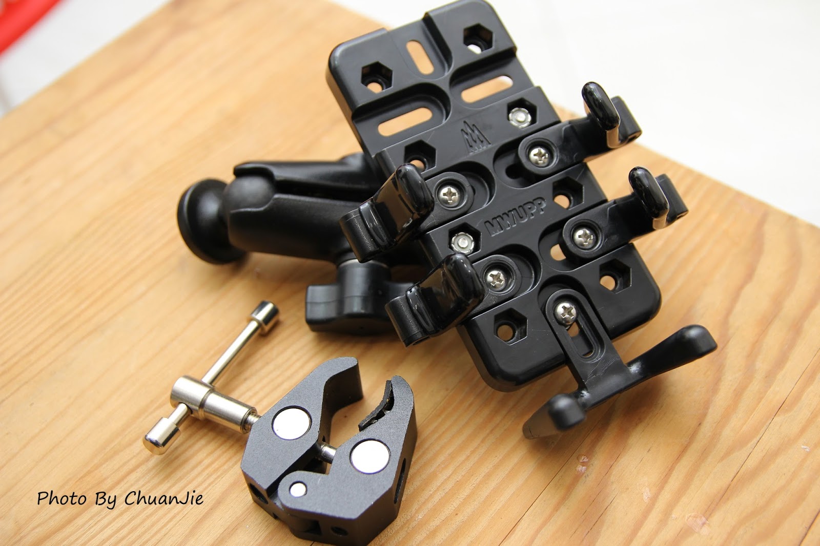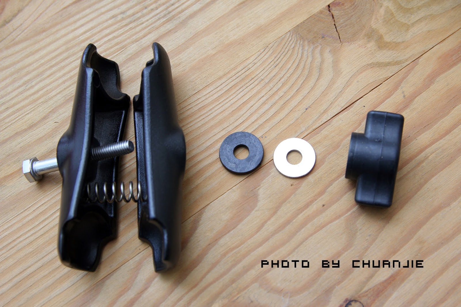 所有配件攤開 此款跟 美國RAM mount 車架 十分相似