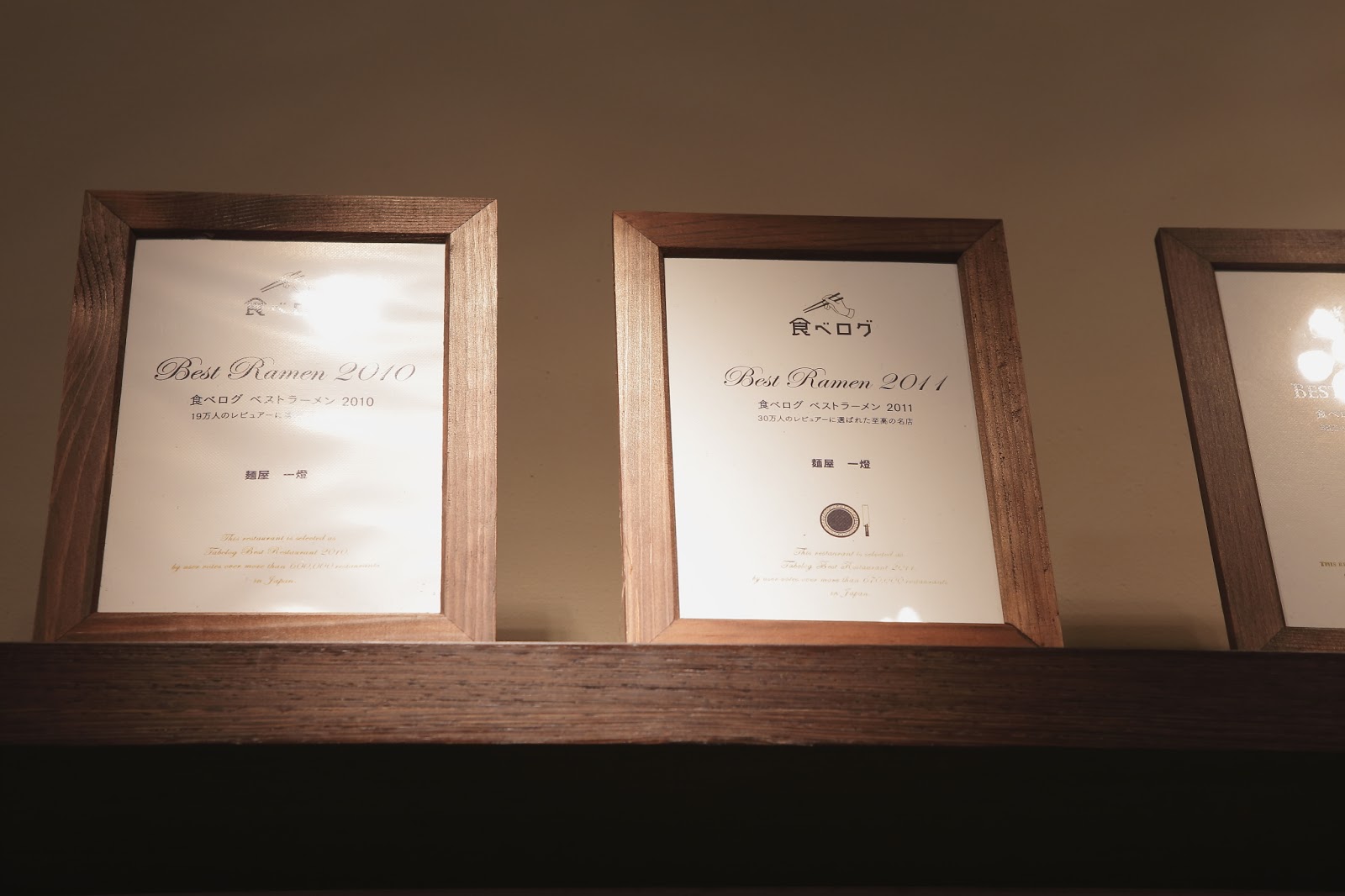收銀櫃檯旁高高地放著曾經得過的拉麵大賞,抬頭看著這些紀錄,不禁想到這是多難達到的境界,日本有著數萬間拉麵店,麵屋一燈曾經是裡面的第一名,實在是太強大了。