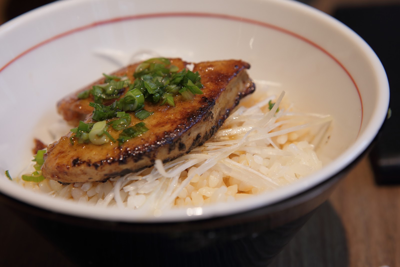 香煎鴨肝丼 $150 看起來份量不多,卻有著無比的濃醇滋味,一碗飯配上一塊鴨肝剛剛好,鴨肝肥美的油脂在口腔中包裹著白飯,肝臟類特有的鮮味不斷刺激味蕾,搭著微甜的醬汁與白蔥絲,讓人貪婪地停不下口,不一會兒就吃盡了。