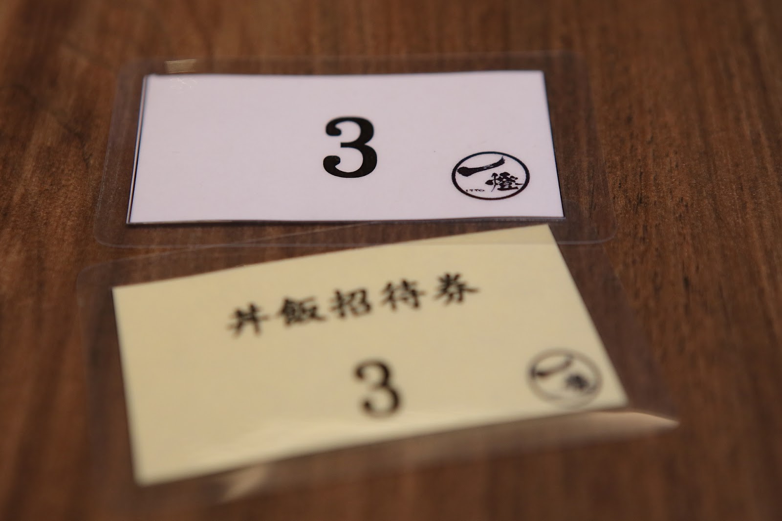 由於起了個大早,很幸運地拿到了第三號,麵屋一燈試營運的這兩天,也有排隊前20名贈送小禮物的活動,跟朋友聊聊天,交流一下麵訊,很快就來到入店的這一刻。