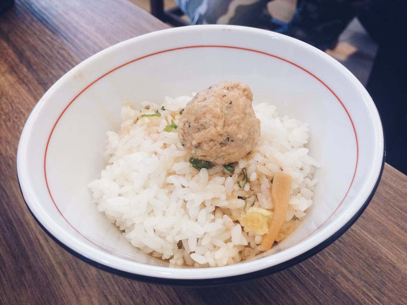 沾湯內附的雞肉丸子,口感略為彈牙,雞肉的風味豐富,其中添加了紫蘇葉的風味,更是起了點醒味覺的加分作用。