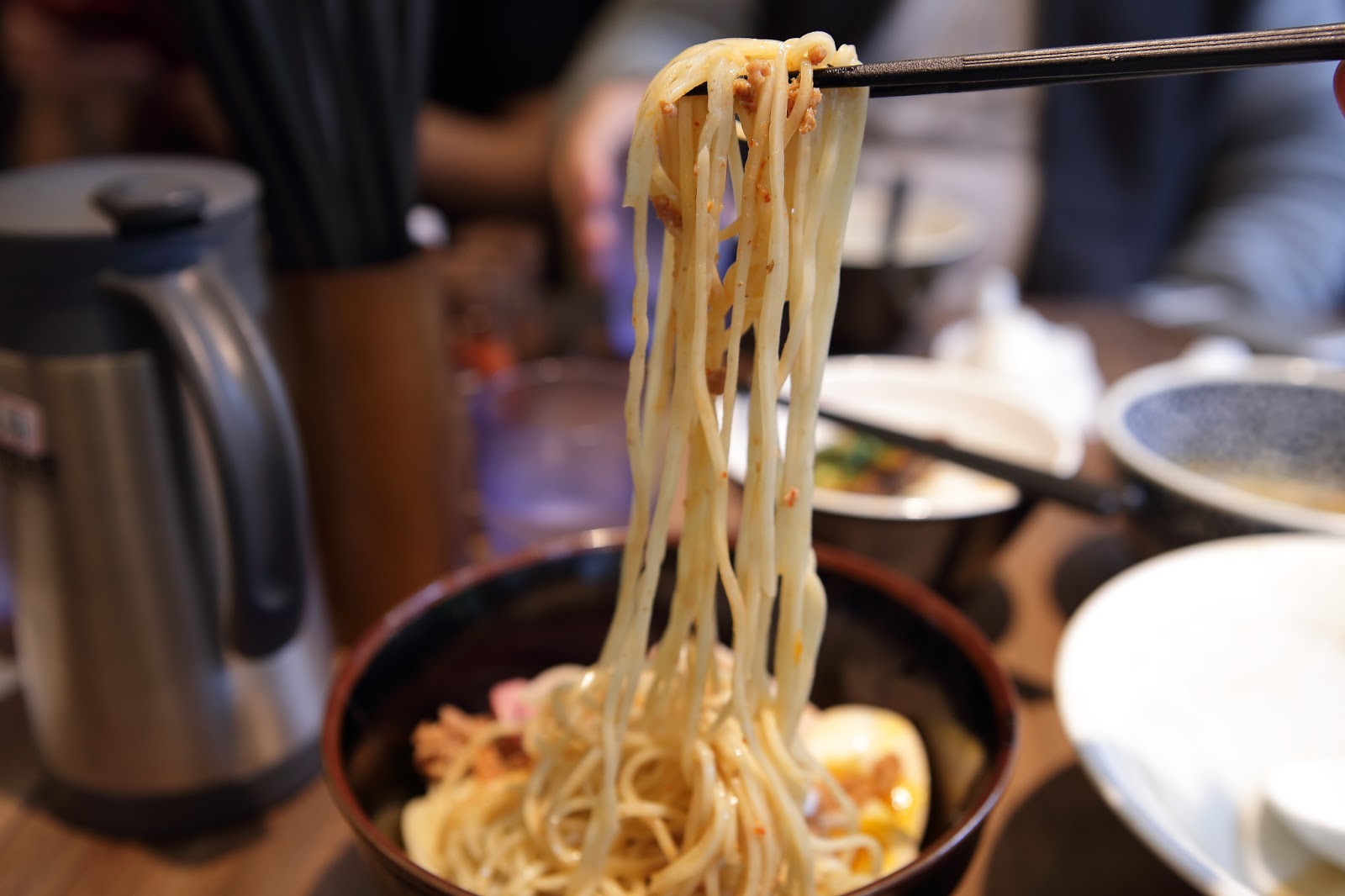 沾汁非常的燙,食用時請務必小心,標準一點的沾麵,其實為了營造出『溫度差』,會讓麵體冰涼,配上滾燙的沾汁,一入口從沾汁的濃烈風味,感受到麵體的緊實麵粉香,以及從冰涼到燙口的不均勻味覺感受,都是沾麵的魅力所在。
