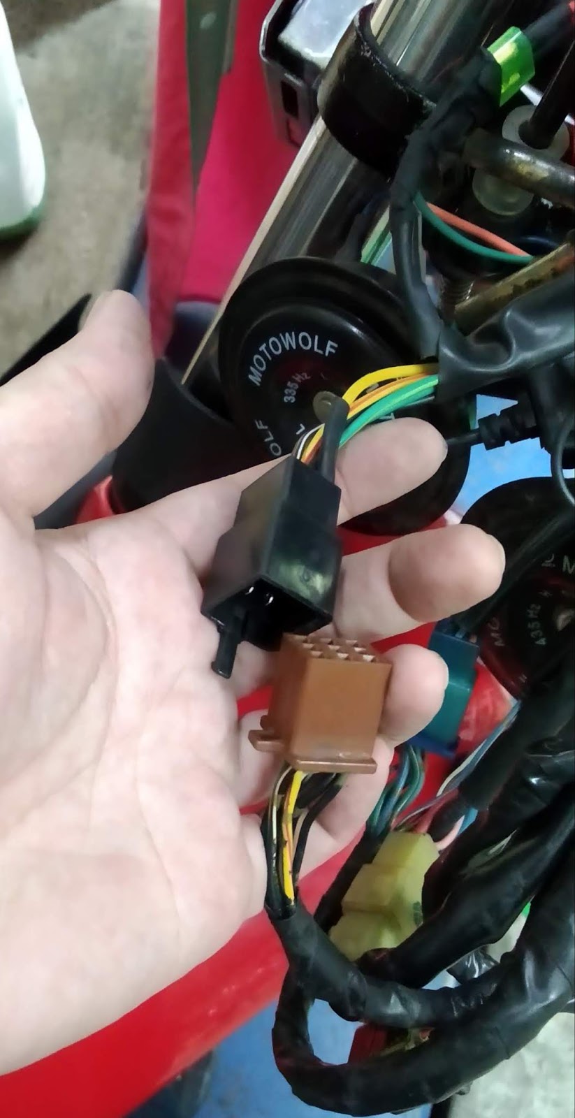 儀表板的線做了一個防水接頭,10線 缺點是要偷儀表就很方便........ 2顆螺絲,插頭一拔.................