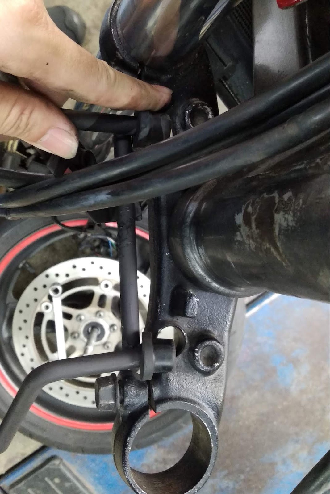 前煞把手支柱螺絲生鏽 找不到好看的 車了一支銅管攻牙 上內六角白鐵