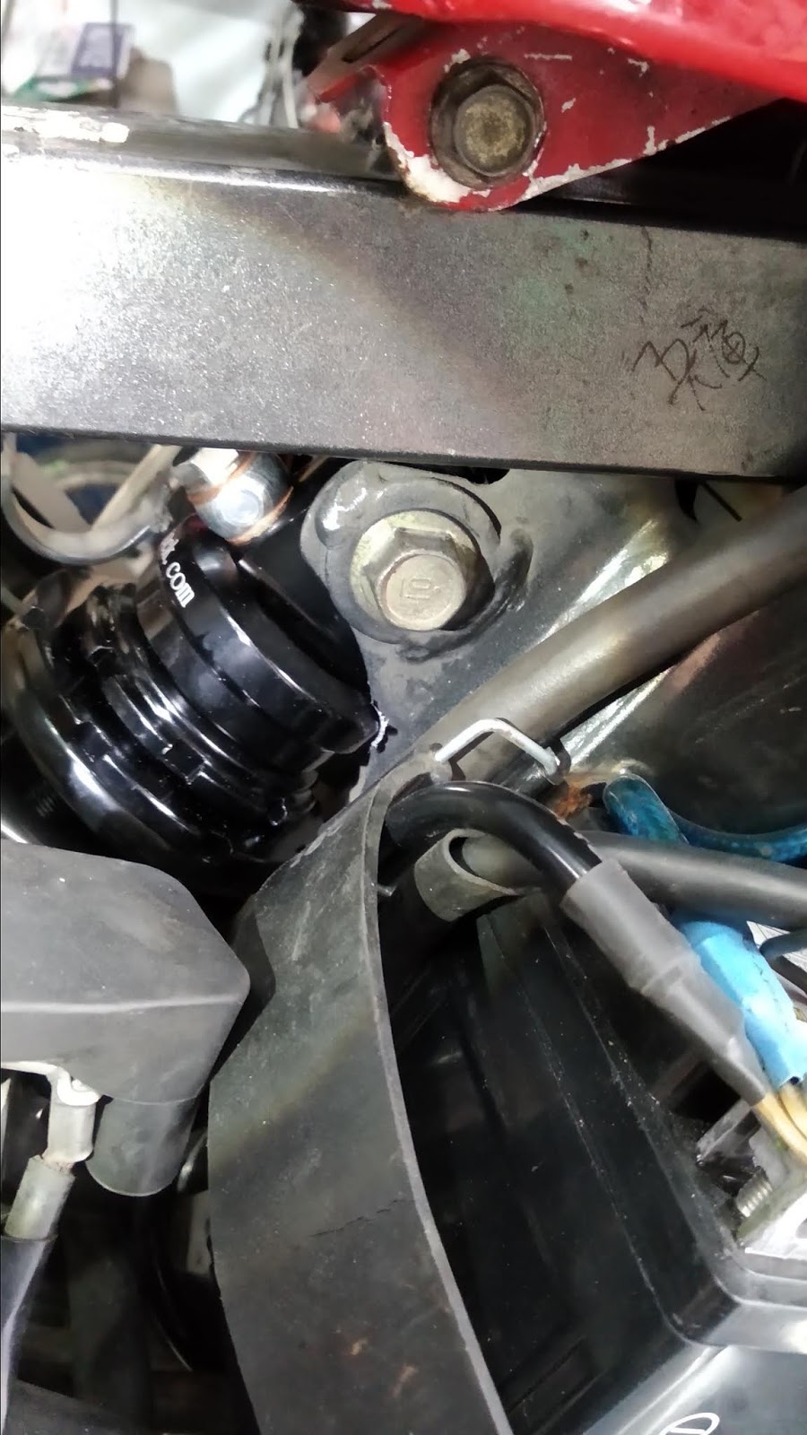 套筒才套上大螺帽就可以轉,難道異音從這邊來 大螺帽沒上緊,是鬆動的。手轉下來先看看