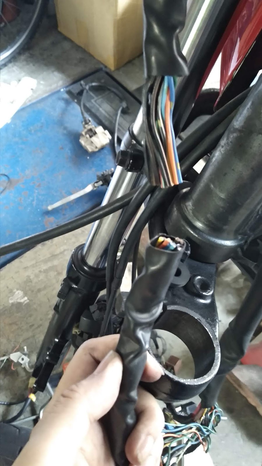 儀表板的線做了一個防水接頭,10線 缺點是要偷儀表就很方便........ 2顆螺絲,插頭一拔.................