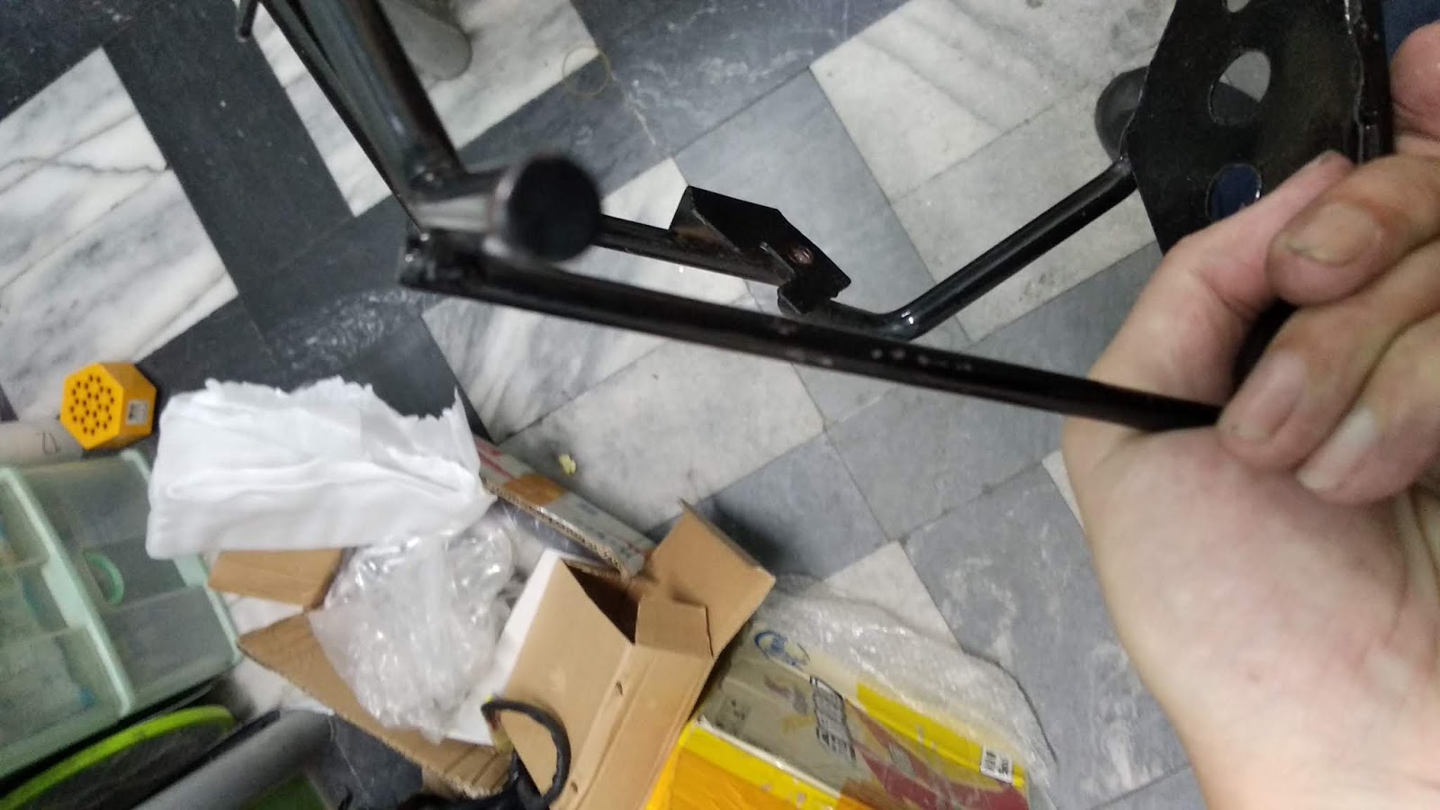 手把多鑽幾個洞輕量化 不是,上個開關跟這開關定位孔不同 定位孔要鑽4.8MM的洞 ,開關才不晃。 鑽5MM會搖晃