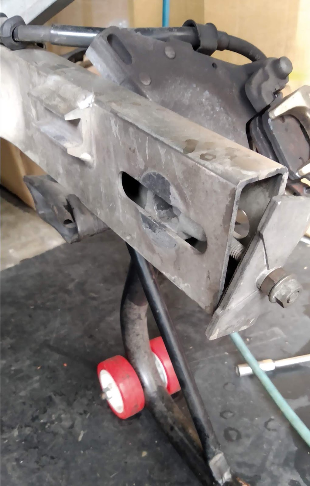 避震本來沒要換,但是這價格還蠻便宜的 而且廠商推坑說,這最後一支,以後不產了。 只好換 用白鐵片折出一個氣瓶固定架 人的心態很奇怪,這價格是速克達嫌貴的要死 用在重車上卻便宜的很