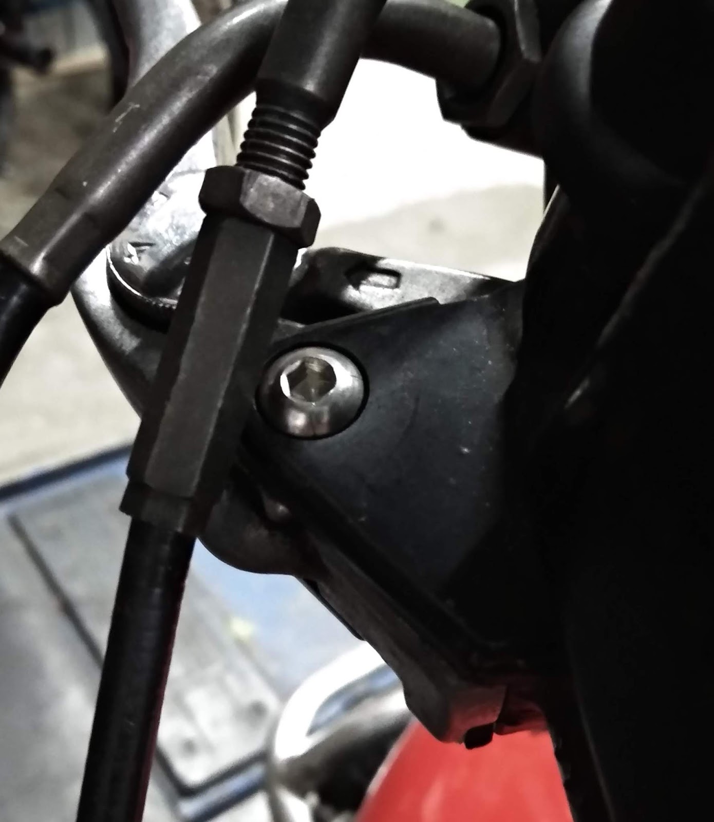 前煞把手支柱螺絲生鏽 找不到好看的 車了一支銅管攻牙 上內六角白鐵