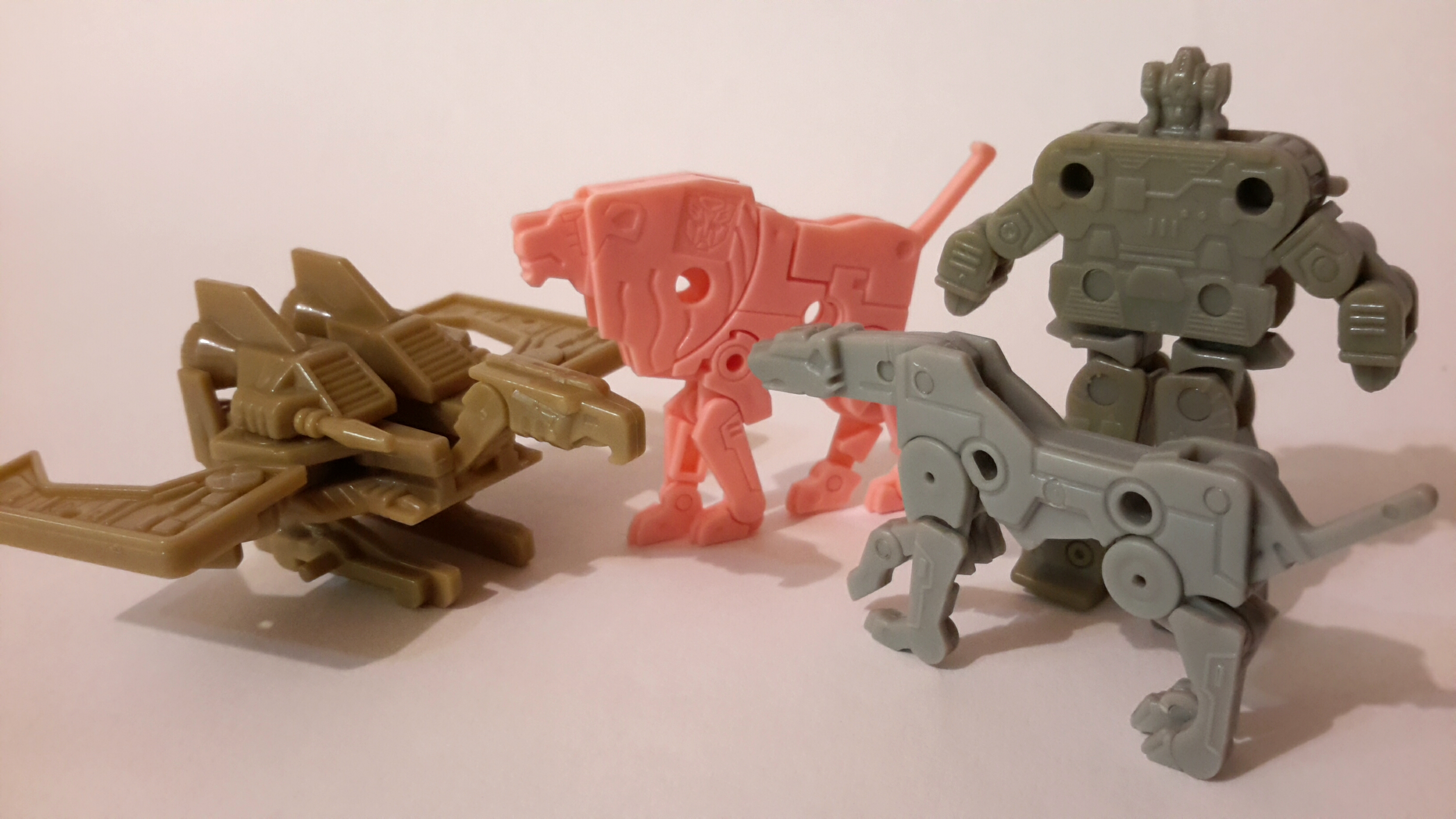1980年代是日本機器人動漫盛行的年代,許多相關的塑膠玩具也隨之發售,在那個年代一個組裝小模型(食玩/盒玩/扭蛋)只要新台幣10元,著名的有鋼彈(機動戰士)、黃金戰士、聖戰士(百獸王、機甲艦隊)、六神合體、變形金剛、魔動王、魔神英雄傳、勇者系列等多部知名日本動漫,此類玩具在台灣的雜貨店(柑仔店)、文具店非常盛行,對於買不起超合金或DX玩具的小孩來說,這是最超值的選擇,平常能帶著上學,跟同學一起交換玩。之後1990年代隨著玩具法規變動與工廠轉移至大陸,這類小玩具也逐漸消失於市場上,現在能留存的都是逸品,如果是日版正品,現在的價格可能比當年的超合金還貴上許多!以下分享我的可變形小食玩/扭蛋收藏。