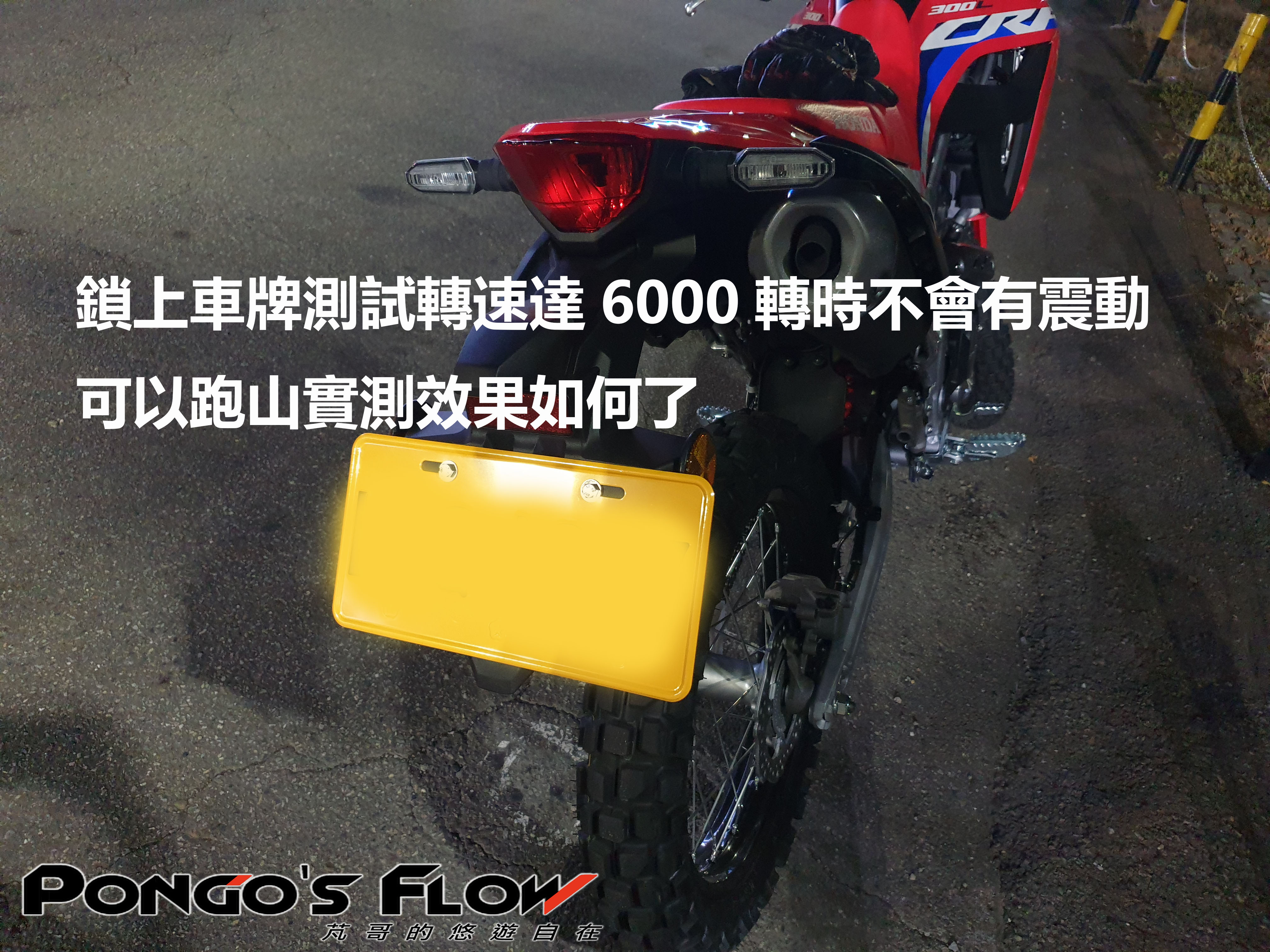 經過小弟跑山的實測後,拉高轉後就不會聽到車牌震動的聲音了。 之後版主會陸續的實測我的CRF300L,並會分享CRF300L的相關改裝 敬請期待:) 最後謝謝大家的收看