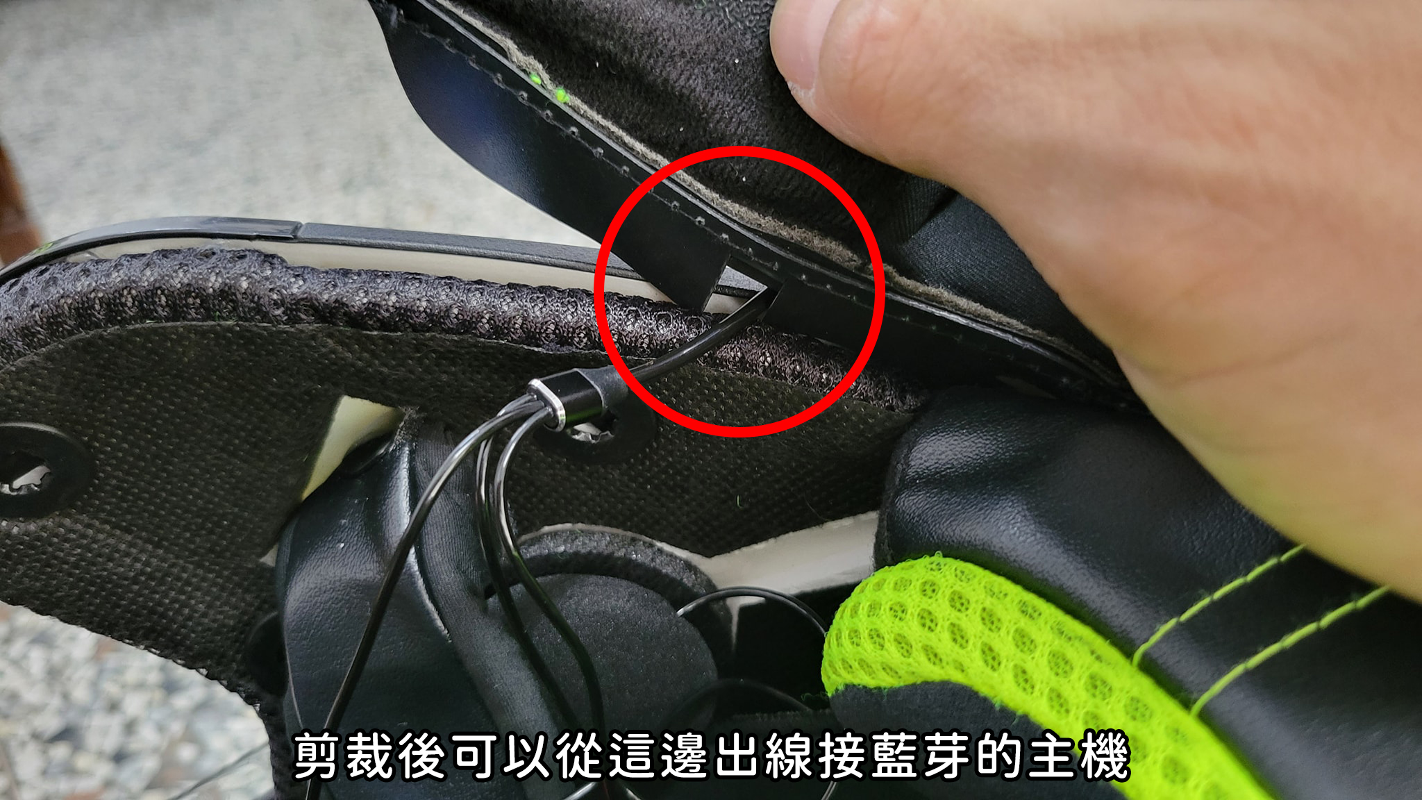 這樣可以剛好出線給主機安裝,戴脫安全帽不會去卡到線材.