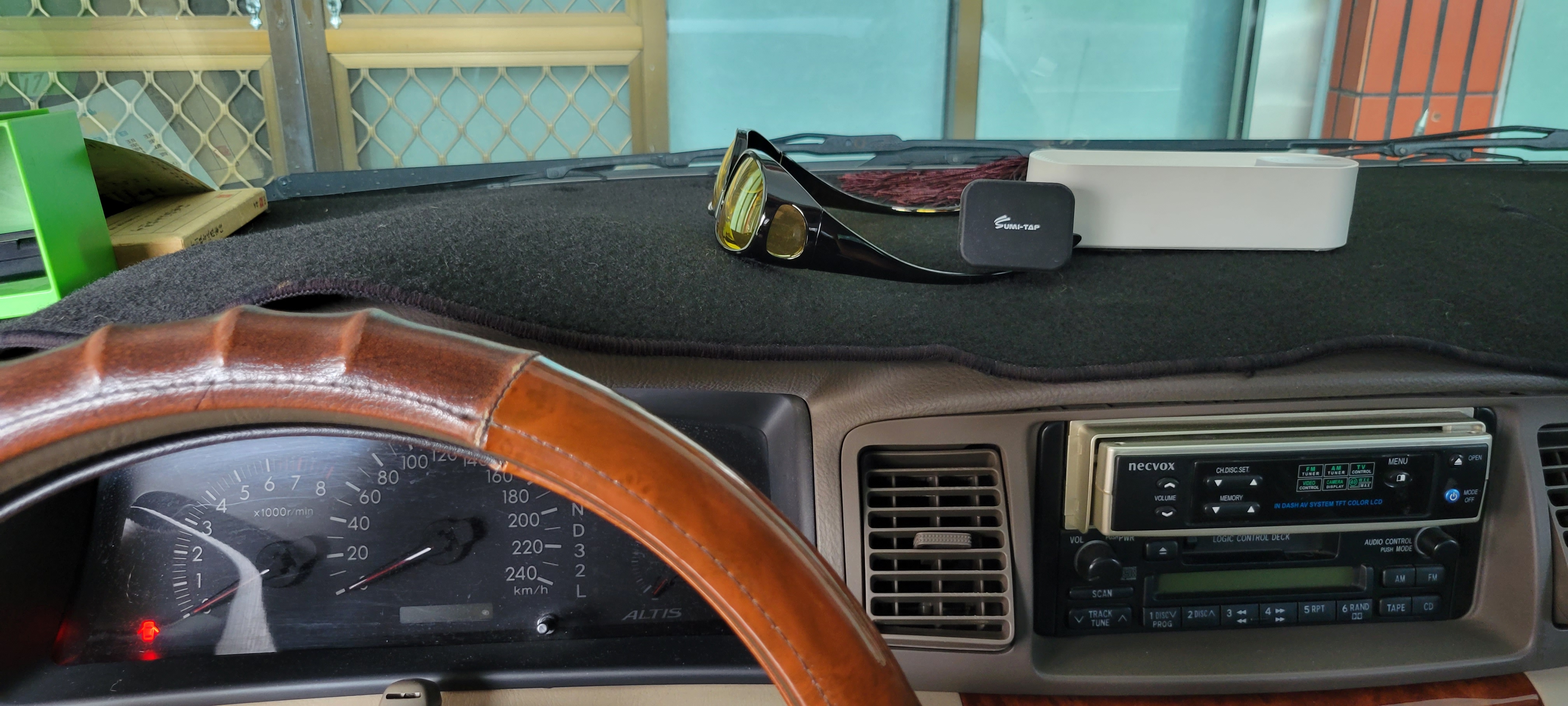 機器底部黏個3M子母扣,就可以貼在車子的避光墊上面