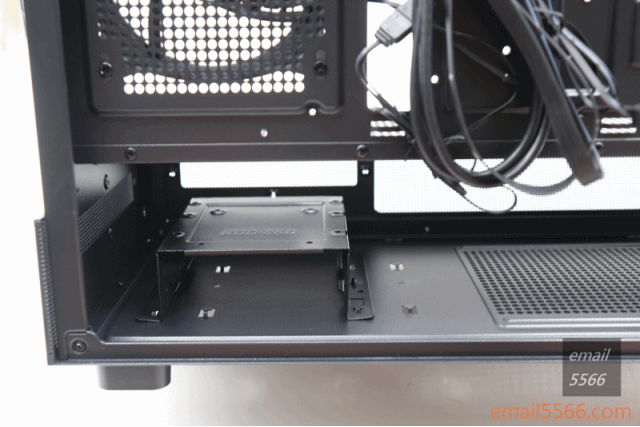 SAMA 幻境界 機殼被稱為卓越的性價比,融合了經濟實惠與高效能,背面除了提供大量的走線空間,底下則是有3.5/2.5吋硬碟的安裝支架,可以拆卸方便快速安裝。